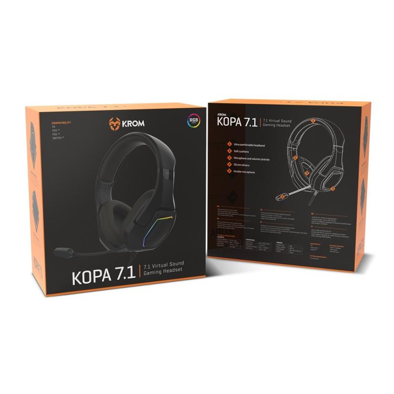 AURICULARESMICRO KROM KOPA 7.1 BLACK 50MM USB RGB